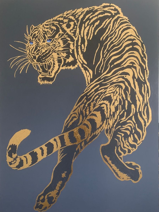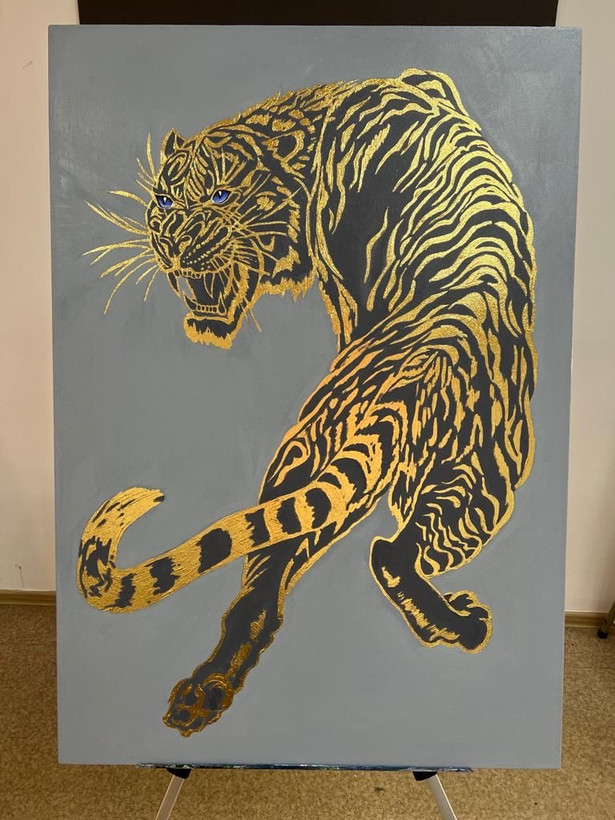 تابلو دکوراتیو ببر ورق طلا کارشده کد کالا ۳۶۶